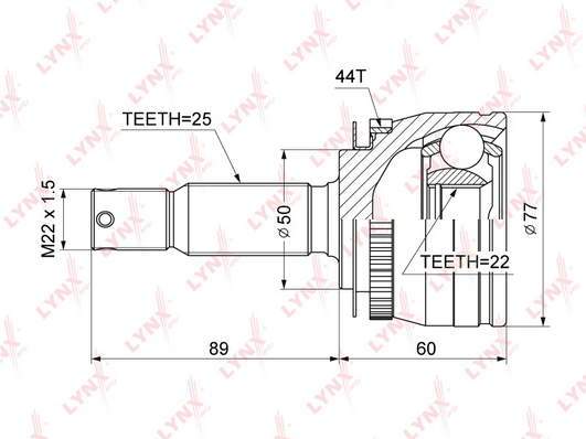 Шрус наружний HYUNDAI SOLARIS (RB) / RIO (JB/UB) 22x52.5x25